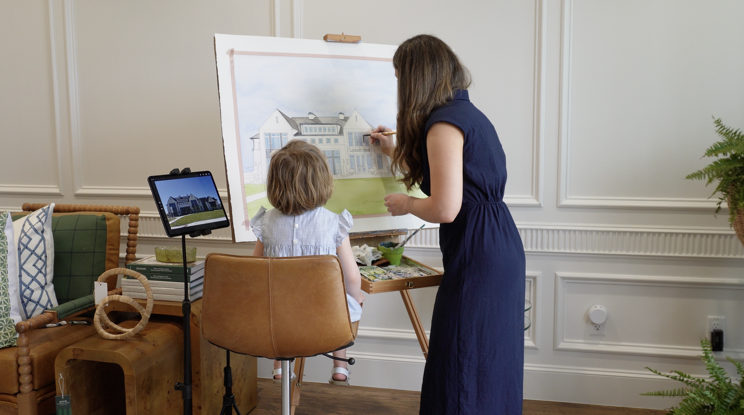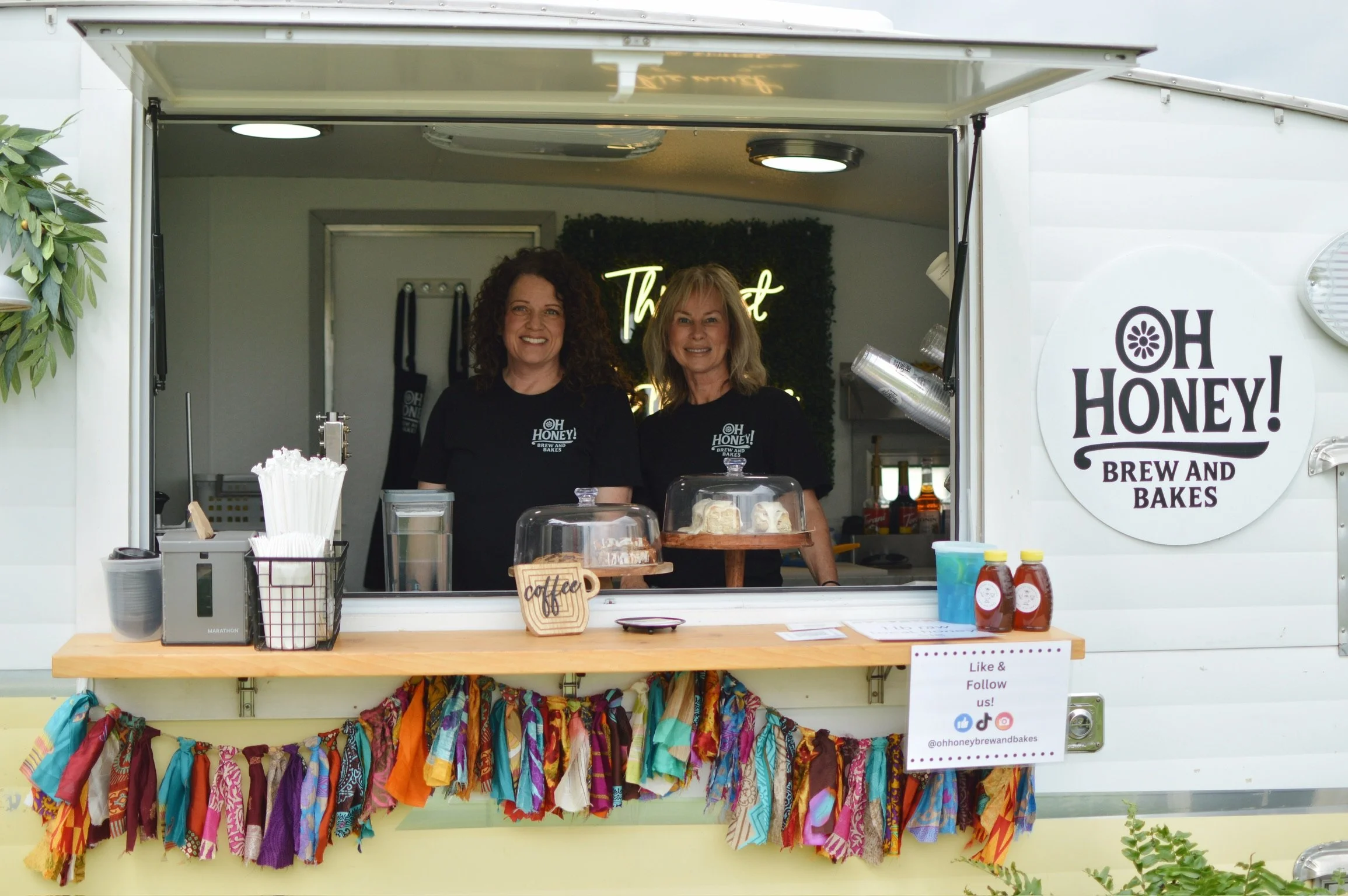Now, if you’re thinking we stopped the fun at Mo, you are sorely mistaken! We had some dear friends with Oh Honey! Brews and Bakes bring their coffee trailer and sell their delicious coffee creations and homemade goods. Their cinnamon rolls are TO DIE FOR! Meanwhile, we even had a watercolor artist, McKenna Judd, live painting our building. She even let Ruth sit in her chair and advise on the true color of our front doors - LOL! We can’t wait to see the finished piece!