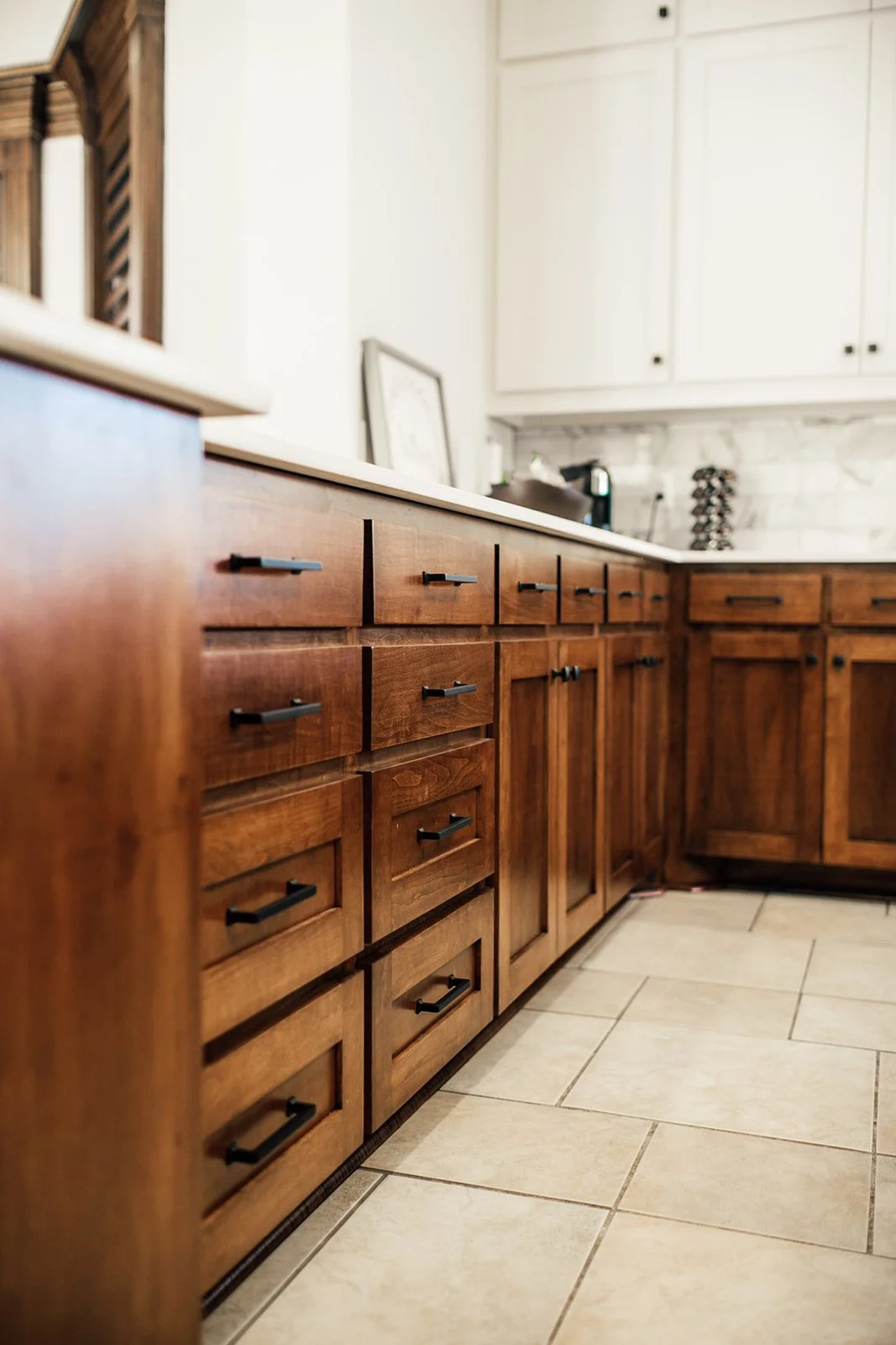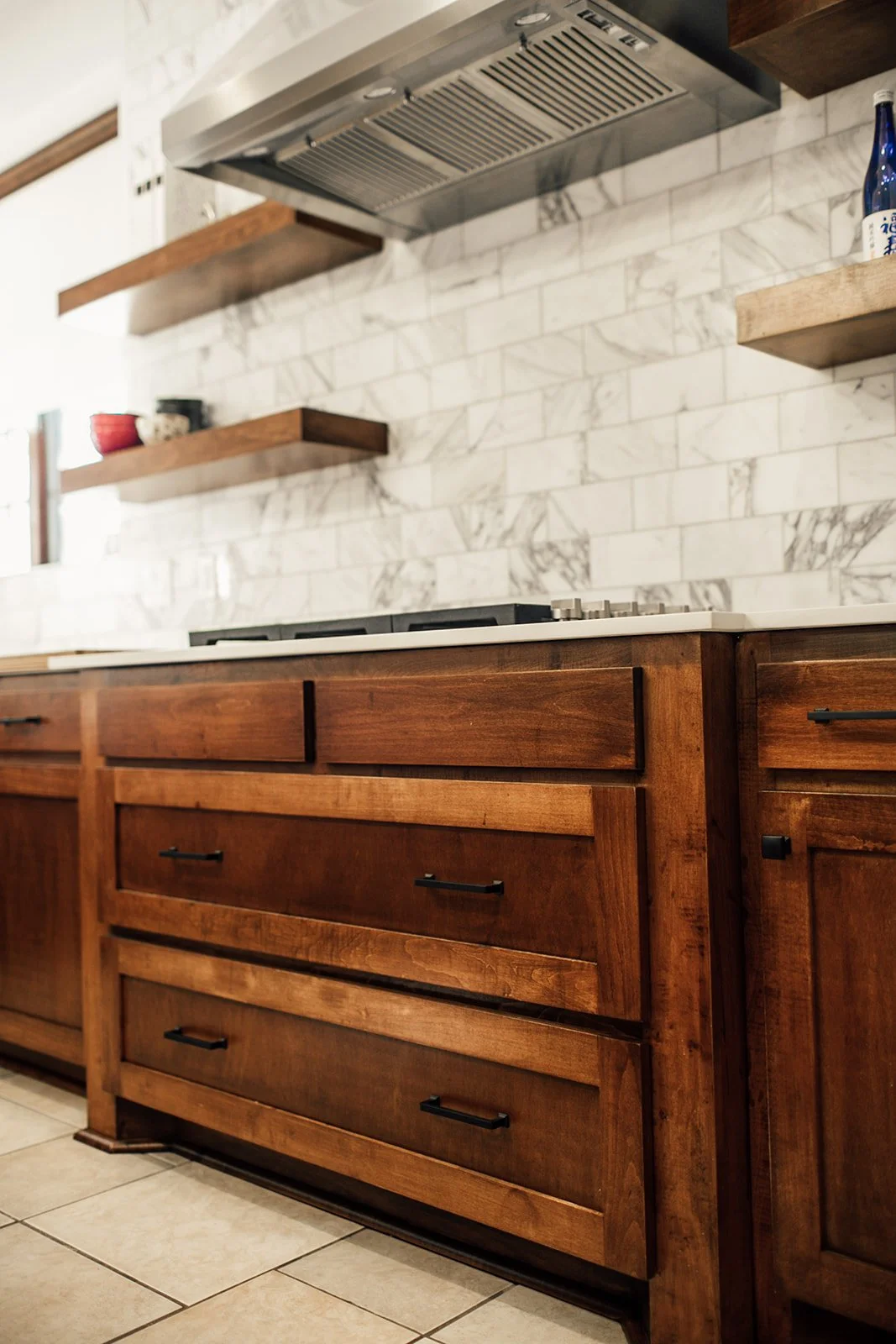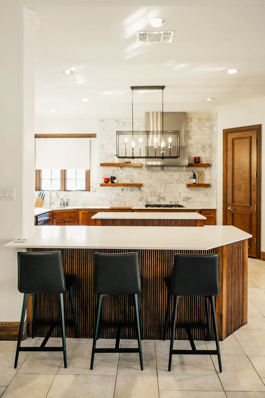 This project is such a wonderfully timeless mix of modern and minimalist design, along with some inspiration from Japan. This kitchen, dinning room, and living room remodel turned out even better than we could have imagined! The wood-stained cabinets and the marble backsplash, along with with the modern light fixtures in the kitchen and dinning area, bring in the classic yet modern look that this client wanted. Just look at how gorgeous the details are!