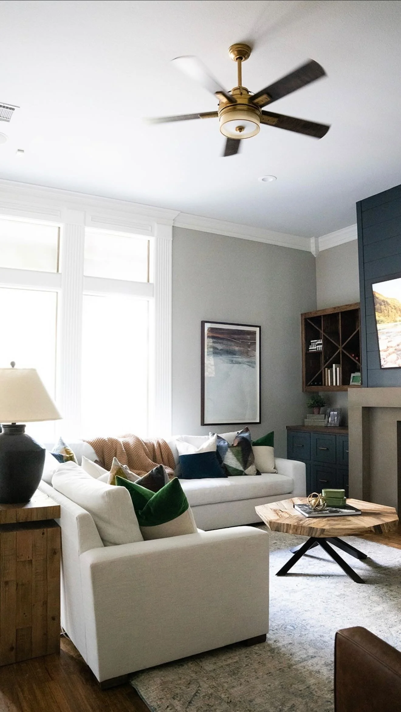 We loved working on this project, because it was such a unique blend of styles, resulting in a clean and open space! These clients wanted a space for their drum set and fun artwork. The black and white base create a soft, calming space, while colorful artwork and chairs bring life and fun into the space! I mean, have you SEEN that gorgeous poppy red chair?