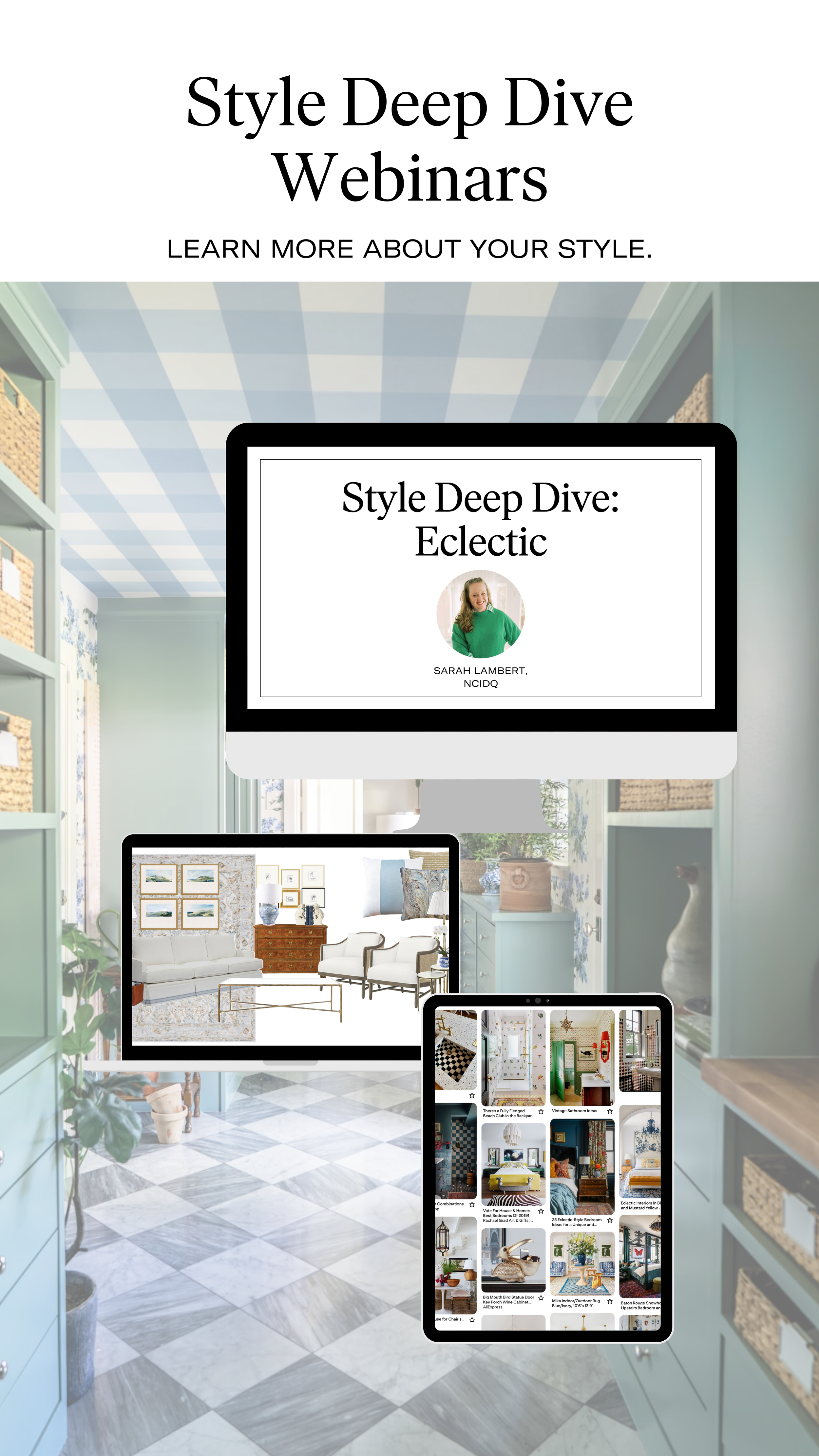 THEN we created some tools for you to get to know more about your style - what furniture shapes, patterns, and colors will fit together cohesively in your authentic style. We recommend starting with a Toolkit, then going to a Webinar to dive deeper!